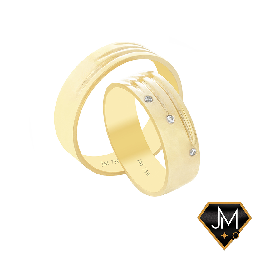 Aliança Hong-Kong Fem. em ouro 18k com 03 Diamantes